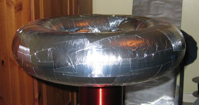 Thursday 6 January 2005The aluminium tape arrived today. I've used the aluminium tape to cover part of the toroid.