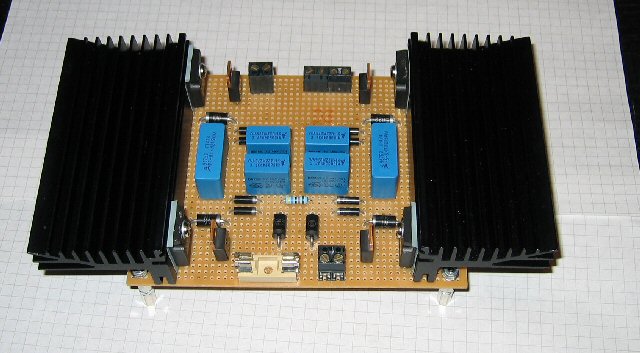 Thursday 13 January 2005I've ordered some more bits from RS. The order includes smaller toroidal ferrite cores (gate drive transformers) and spacers. I'm going to mount the driver circuitry under the H-bridge circuit.The H-bridge is almost finished.