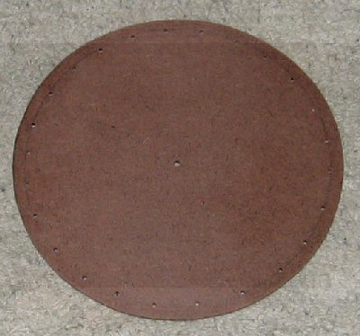 Now I can start making the toroidal top load. I've cut a circle out of hardboard to which I'm glueing some aluminium tin foil. I've also drilled a series of holes around the circumference of the circle. These holes are for the wire, which will hold the hoover hose in place (this is a method used by other coilers). The hoover hose will then be covered in aluminium tape (I hope the tape will arrive tomorrow).