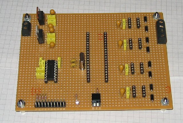 Sunday 23 January 2005I drilled some holes in one of the MDF squares which allows me to screw the circuitry in place. I also made the AC to DC converter. This requires a small toroidal transformer which is also screwed to the MDF square.