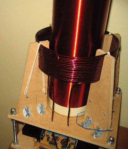 Friday 11 February 2005That's it, I've cut the primary coil holders to shape and put them in place with nuts and bolts. I've also wound the primary coil. The whole setup looks really good. I'll post pictures tomorrow. I've used 19 turns for the primary which I don't know is good or not. I can easily remove turns, but adding turns will mean having to buy more copper wire. Hopefully it should be okay.Pretty much all construction is now finished. I can now start low power testing. I'm still going to wait for the function generator before doing any tests. It should arrive next week.